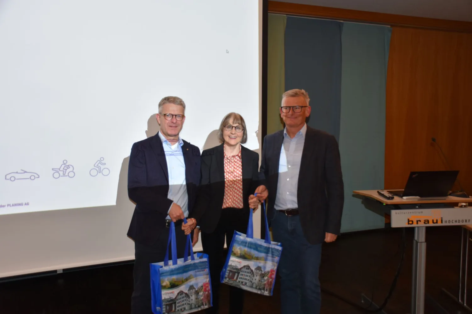 Die drei Referenten Dr. Gregor Schwegler, Kantonsingenieur Kanton Luzern, Prof. Dr. Andreas Hermann, Direktor Universität St. Gallen, und Aschi E. Schmid, Mobilitätsplaner und Verkehrsexperte, haben mit Ihren Erläuterungen zur Mobilität der Zukunft spannende unterschiedliche Blickwinkel gewährt und zum Nachdenken und Diskutieren angeregt. Durch den Abend geführt hat unsere Netzwerkleiterin Politik Lea Bischof-Meier.